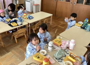 風が冷たい日でしたが、つぼみ組のお友達はお母さんと一緒に元気に登園しています😊