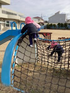 園庭では砂場でお友達と一緒に穴を掘ったり、すべり台を交互にすべったり、お友達同士の関わりも増えていっています😊✨