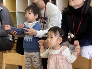 小さな手を広げ、歌に合わせて体を揺らしながらお母様と一緒に一つずつ指をさしていくかわいい姿が見られました✨