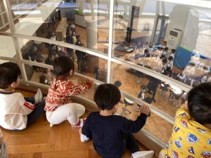 年中組さんの演奏が始まると「あれ、いっしょー!」とすずを指したり、曲に合わせてリズムをとったり、楽しく見学させてもらいました🎵