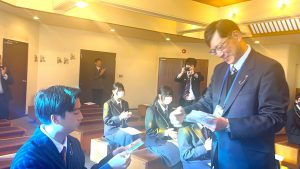 理事長先生や校長先生より、直接、誕生日をお祝いするカードを受け取ります。
