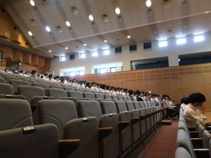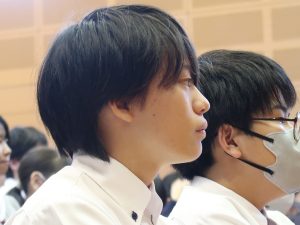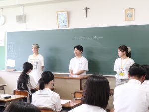 卒業生に来校してもらい、現在の進学先の様子や高校時代の教訓について語ってくれました。