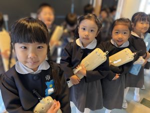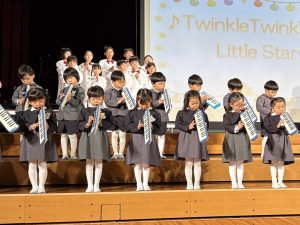 「ぼく あともうすこしで ひけるよ!」「みえにくいけど やってみる!」と子どもたちは教員やお友だちと一緒に楽しみながら意欲的に練習し、クリスマスページェント本番では素晴らしい演奏をお客さんに披露することができました。