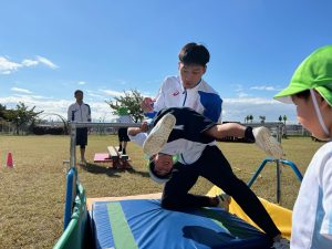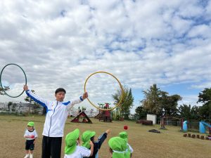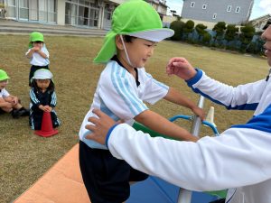 最近の体操では、準備体操から始まり鉄棒、跳び箱、平均台、ボール遊びをして楽しんでいます。子どもたちは身体を動かしながら、順番をどこで待つか、ということも考えながら怪我のないよう取り組んでいます。ボールはころころしたり、教員が投げたのを取りに行ったり、1人1つボールを使い、たくさん触っています。鉄棒などの器具を使ったものでも、子どもたちはやってみようとどんどん挑戦していきます。同時に友だちの姿を見て、やってみたいと思ったり、少しだけやってみようとしたり、1人ひとりのペースも大事にしています。最近の鉄棒では、前回りに挑戦しています!これからも体操の時間を子どもたちとともに楽しみたいと思います。
