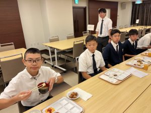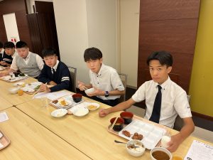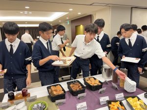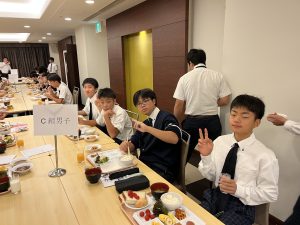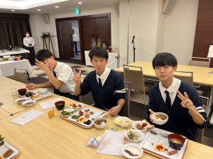 男子も女子も時間通りに朝食をとり、摩文仁の丘に向かいます。