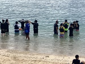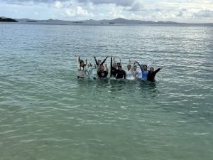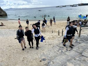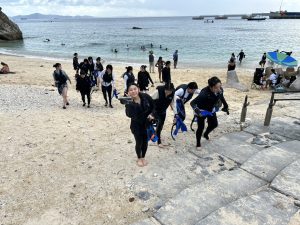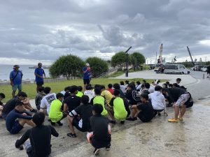 中部民泊組とまちなか留学組は、14時30分に崎本部緑地で合流し、ここでマリンスポーツ体験を行いました。