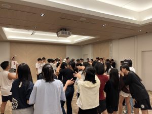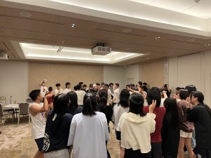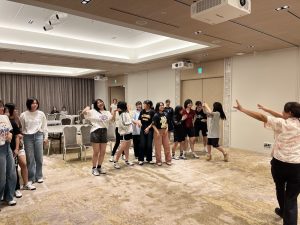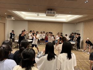 松田先生と富来先生の奇妙な話のあと、ガイドさんからの沖縄の踊り「カチャーシー」をみんなで踊りました。
