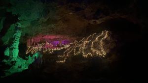 食後、鍾乳洞へ入りました。巨大な地底空間が広がり、幻想的な自然の神秘を肌で感じました。