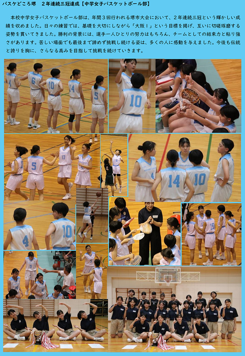 バスケどころ堺 2年連続三冠達成【 中学 女子バスケットボール 部 】