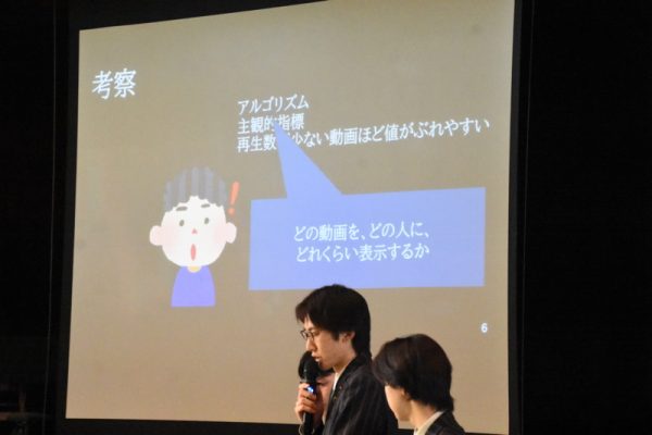 この研究では、自分たちで動画を作成したり、また動画の再生数等を、「相関係数」「回帰分析」を使って分析する等、高校で学ぶ内容以上のことを勉強して研究に取り組むことができました。高度な内容を自分たちで学んでいくのは大変だったと思いますが、内容は良くまとめられていました。