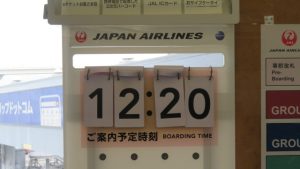 関西空港では41番搭乗口に予定通り集合しましたが、前日からの大雪の影響で新千歳空港が非常に混雑しているため出発が3時間ほど遅れることになりました。JALのスタッフからパンとジュースを貰って待機します。