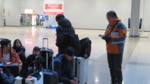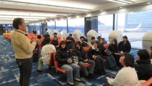 いよいよ研修旅行が始まりました。ABC組は関西空港に、DEF]組は伊丹空港に分かれて集合しました。