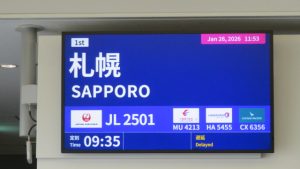 関西空港を12時54分に離陸し、新千歳空港に14時25分に着陸しました。