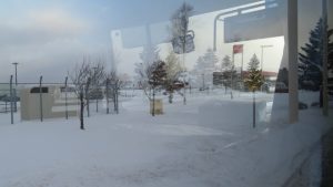 気温はー4.6℃、外は一面雪景色で真っ白な世界です。