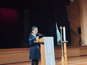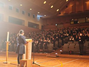 聖歌を「きたれ友よ」全員で歌い、クリスマスを待ち臨みます。