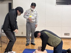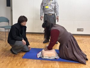 消防局の方にお越しいただき、心肺蘇生法についての訓練を行いました。
