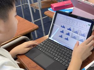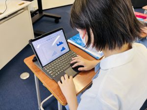 3年生からExcelを使いこなし、6年生ではSDGsを題材に統計学的なアプローチ(PPDACサイクル)で課題を分析し、行動へと繋げます。