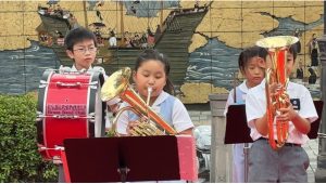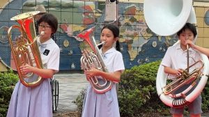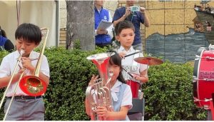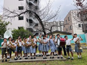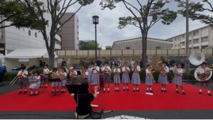 大阪関西万博以来の大きな舞台でしたが、金管バンド部のメンバーは堂々と「崖の上のポニョ」と「ドラえもん」を演奏しました。