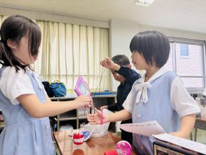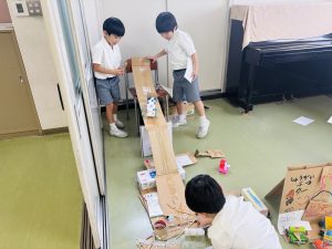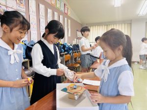 2年生は生活科の学習で、張力や磁力、浮力などを生かしたおもちゃを作りました。