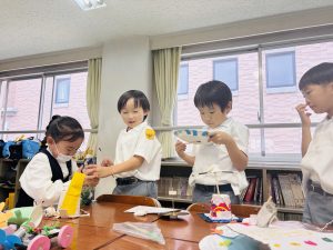 創意工夫したおもちゃは、1年生にとっても先生方にとっても楽しいものとなりました。
