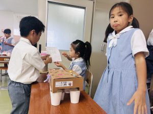 それらのおもちゃで1年生を招待して、おもちゃランドを開園しました。