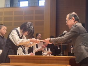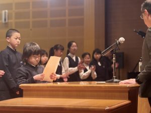 本日の児童朝礼では、学級委員の任命式が行われました。