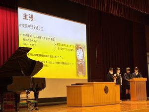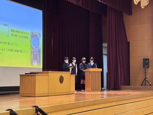 さらに、修学旅行での学びを全校児童へ伝える時間がありました。