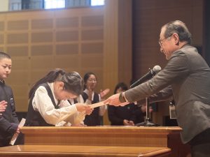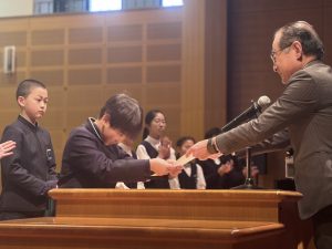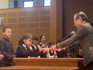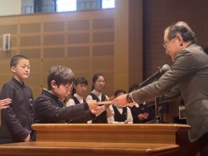 本日の児童朝礼では、学級委員の任命式が行われました。
