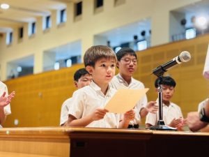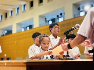 この後には英検やTOEFL primaryⓇの表彰式、各自習い事で校外で受賞された児童の表彰(フィギュアスケート)も行われました。