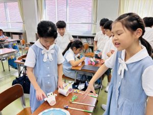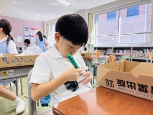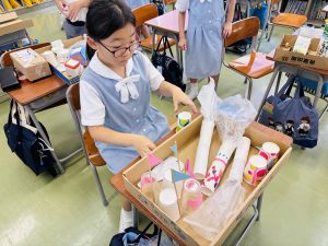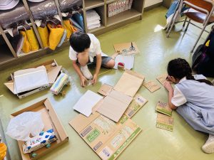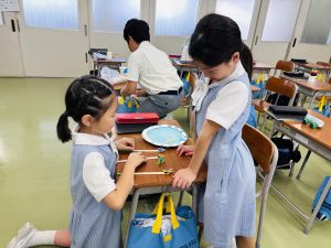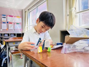 例えば、磁力を使ってキャラクターを動かしたり、ゴムの張力を活かして動力に変えたりと、理科的な目線で制作していました。