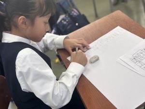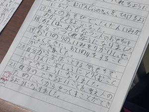 2年生は生活科で自分の成長を振り返る時間にしていました。