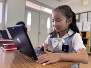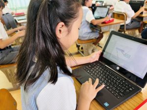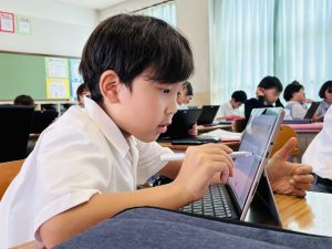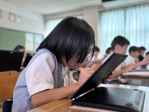 3年生は、今年から一人一台のタブレットをもって学習しています。