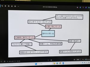 子どもたちは夏休みの思い出をブレインストームで思い出してまとめていました。
