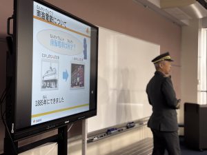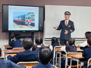 南海電鉄の方にお越しいただき、電車のマナーや南海電鉄の歴史について教えていただきました。
