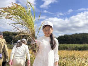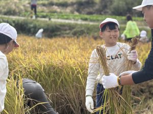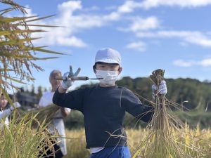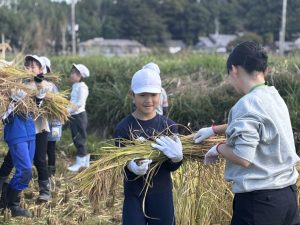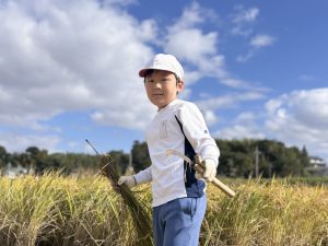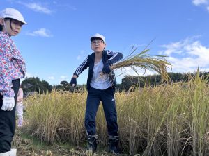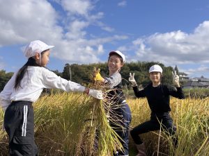 4年生は先日、5月に植えた田植えの収穫に行きました。