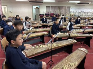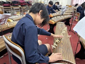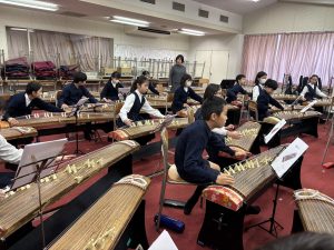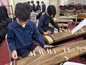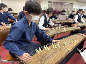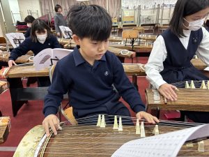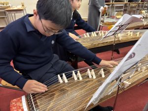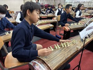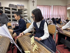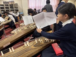 5年生は賢明学院中学高等学校の音楽室へ行き、お琴体験をしました。