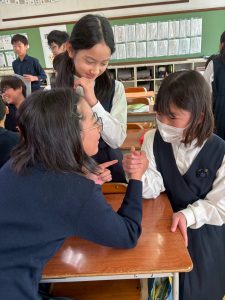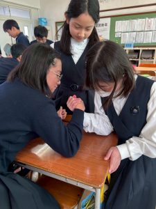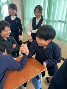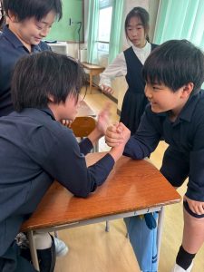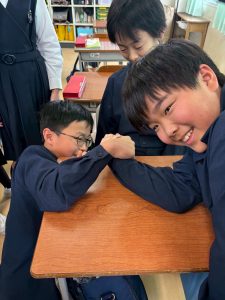 最近の急激な寒さで外に出てこないと思いきや、教室で腕相撲大会が行われていました。