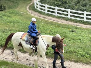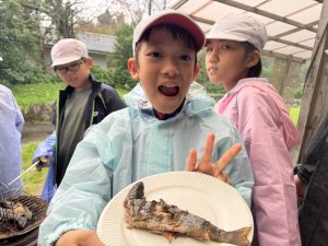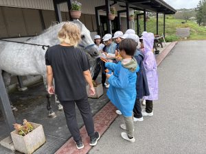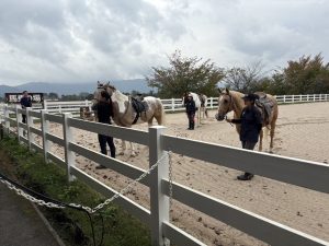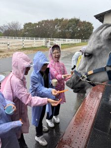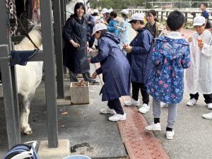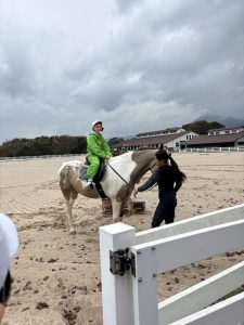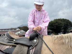 午後はあいにくの天気でしたが、乗馬体験や魚釣り体験に取り組む事ができました。
