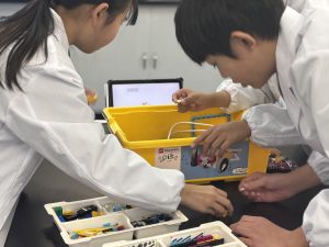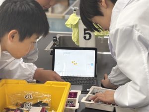 6年生はレゴを使って、プログラミングに挑戦しました。
