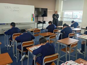個々の英語力から受験レベルを判定、クラスを細分化するので、英語科のNaoki先生、反田先生のほか、国際教育統括の安達教頭も監督に入ります。