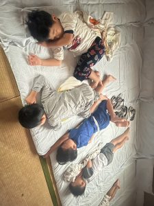楽しい時間の後は、夕の祈りをして、みんなで歯磨きタイム。少し緊張しながらも、ぐっすりと眠りにつきました。
