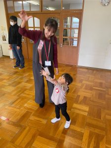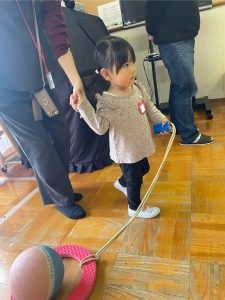先生のところまでボールを転がし、投げたボールがコロコロ転がる様子を見て、とても嬉しそうな姿が見られました。