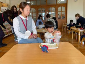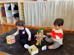 お友だち同士の関わりも少しずつ増えてきて、お友だちがしていることを見て、「一緒にする!」という姿も見られました♡