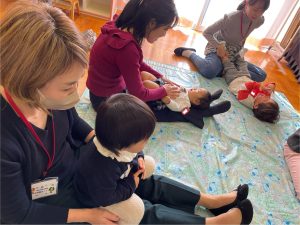 てんしクラブでは、お母さんとのふれあい遊び「ベビーマッサージ」をしました✨