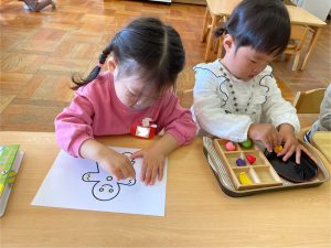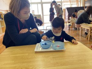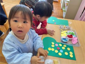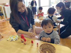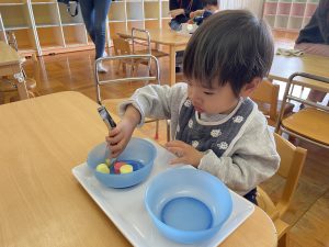 お友だち同士の関わりも少しずつ増えてきて、お友だちがしていることを見て、「一緒にする!」という姿も見られました♡