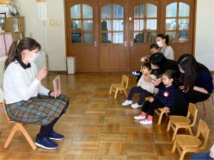 英語では、「♪Head Shoulders Knees and Toes」の歌にあわせて身体にタッチしていきました🎵