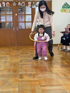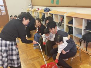 つぼみ組では、運動遊びをしました!親子でフープに入り電車になって走ったり、サイコロを転がして出た目のコアラ、カンガルー、サルに変身して競争をしました✨😊
