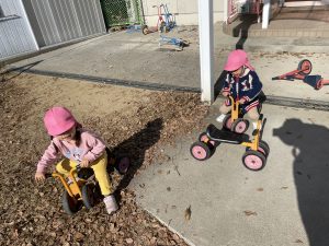 てんしクラブでは、運転遊びをしました😊みんなで動物体操をし、次にくまやうさぎを目指して走ったり、玉入れをしました♡