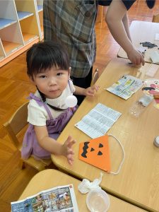 めばえ組では、ハロウィン製作や戸外遊びをしました。ハロウィン製作では、ジャック•オー•ランタンの手提げバッグを作りました🎃ジャック•オー•ランタンの目や鼻、口をのりで貼り個性豊かな手提げバッグが完成しました。天気も良く、ボールや遊具で楽しそうに遊ぶ子どもたちの姿が見られました🎵