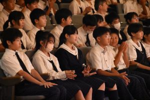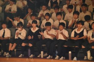 秋麗祭1日目の舞台発表では、全校生徒が集まり、各クラブや団体による演技を鑑賞しました。出演団体ごとに創意工夫が見られ、日頃の活動の成果や個性を活かした発表は、多くの関心を集めました。生徒たちが主体的に準備し、観る人を惹きつける工夫や努力を行ったことが随所に感じられる内容でした。